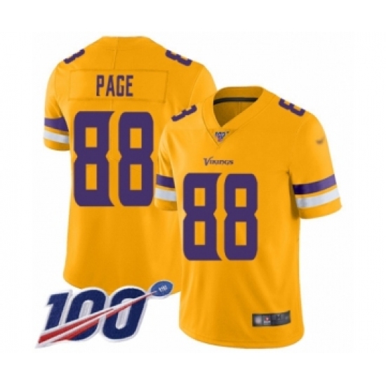 Men's Minnesota Vikings #88 Alan Page Limited Gold Inverted Legend 100th Season Football Jersey