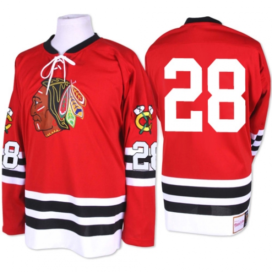 Home>NHL>Chicago Blackhawks>Steve Larmer>Men's Mitchell and Ness Chicago Blackhawks #28 Steve Larmer Premier Red 1960-61 Throwback NHL Jersey