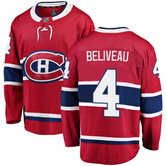 Men's Montreal Canadiens #4 Jean Beliveau Authentic Red Home Fanatics Branded Breakaway NHL Jersey