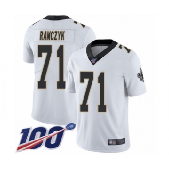 >Men's New Orleans Saints #71 Ryan Ramczyk White Vapor Untouchable Limited Player 100th Season Football Jersey
