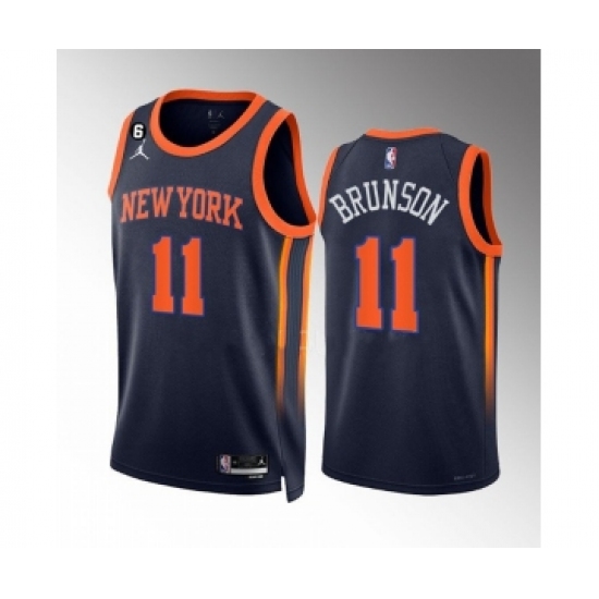 Men's New Yok Knicks #11 Jalen Brunson Navy Statement Edition With NO.6 Stitched Basketball Jersey