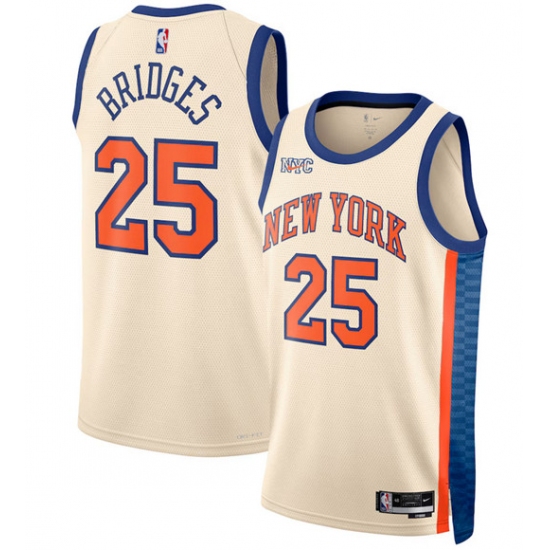 Men's New Yok Knicks #25 Mikal Bridges Cream 2025-26 City Edition Swingman Stitched Basketball Jersey