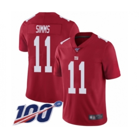 Men's New York Giants #11 Phil Simms Red Limited Red Inverted Legend 100th Season Football Jersey