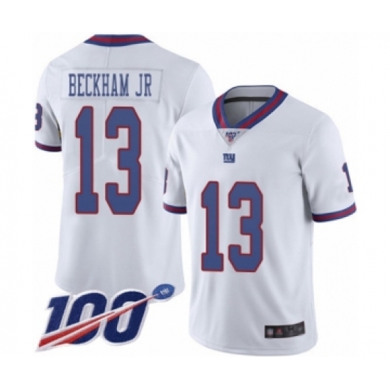 >Men's New York Giants #13 Odell Beckham Jr Limited White Rush Vapor Untouchable 100th Season Football Jersey