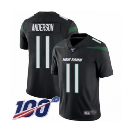 >Men's New York Jets #11 Robby Anderson Black Alternate Vapor Untouchable Limited Player 100th Season Football Jersey