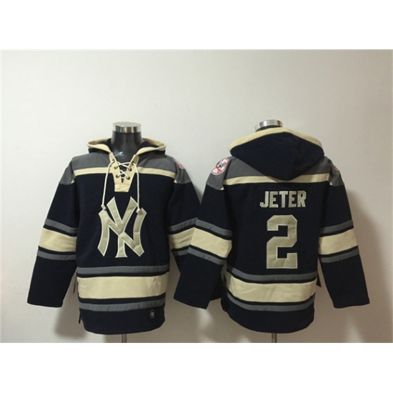 Men's New York Yankees #2 Derek Jeter Navy Ageless Must-Have Lace-Up Pullover Hoodie