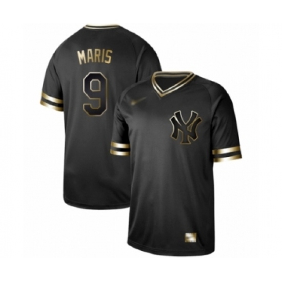 >Men's New York Yankees #9 Roger Maris Authentic Black Gold Fashion Baseball Jersey