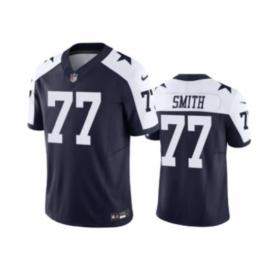 >Men's Nike Dallas Cowboys #77 Tyron Smith Navy 2023 F.U.S.E. Vapor Limited Stitched Football Jersey