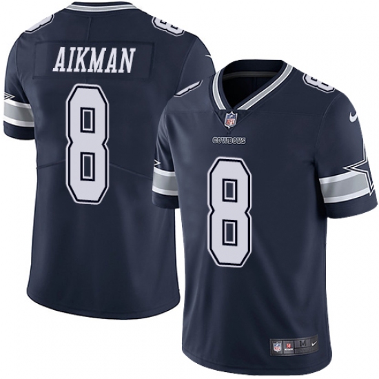 Men's Nike Dallas Cowboys #8 Troy Aikman Navy Blue Team Color Vapor Untouchable Limited Player NFL Jersey