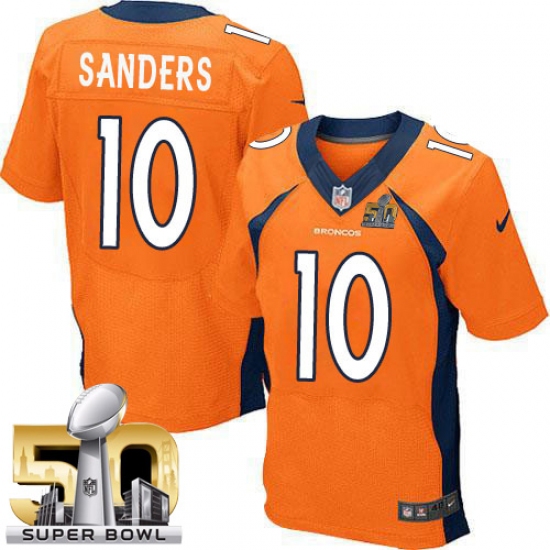 Men's Nike Denver Broncos #10 Emmanuel Sanders Elite Orange Team Color Super Bowl 50 Bound NFL Jersey