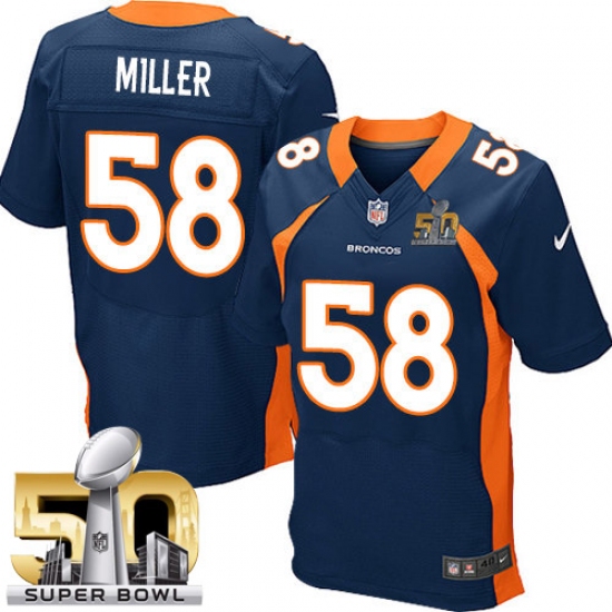 Men's Nike Denver Broncos #58 Von Miller Elite Navy Blue Alternate Super Bowl 50 Bound NFL Jersey