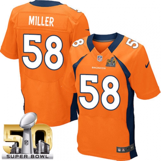 Men's Nike Denver Broncos #58 Von Miller Elite Orange Team Color Super Bowl 50 Bound NFL Jersey