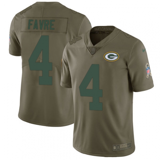 Men's Nike Green Bay Packers #4 Brett Favre Limited Olive 2017 Salute to Service NFL Jersey