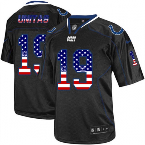 Men's Nike Indianapolis Colts #19 Johnny Unitas Elite Black USA Flag Fashion NFL Jersey