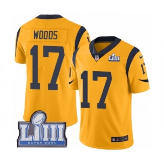 >Men's Nike Los Angeles Rams #17 Robert Woods Limited Gold Rush Vapor Untouchable Super Bowl LIII Bound NFL Jersey