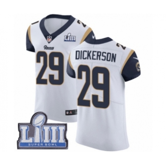 >Men's Nike Los Angeles Rams #29 Eric Dickerson White Vapor Untouchable Elite Player Super Bowl LIII Bound NFL Jersey