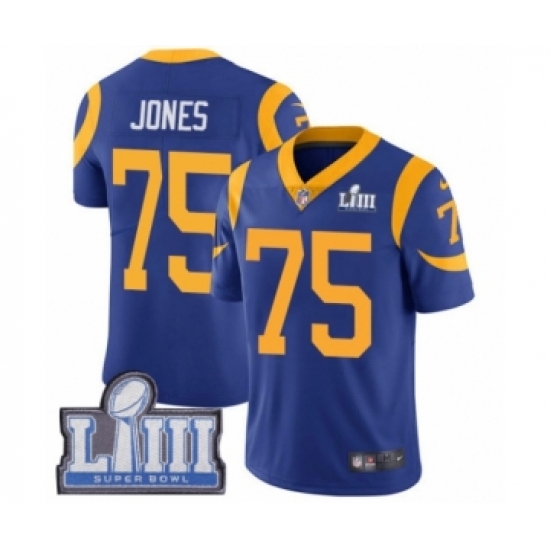 Men's Nike Los Angeles Rams #75 Deacon Jones Royal Blue Alternate Vapor Untouchable Limited Player Super Bowl LIII Bound NFL Jersey