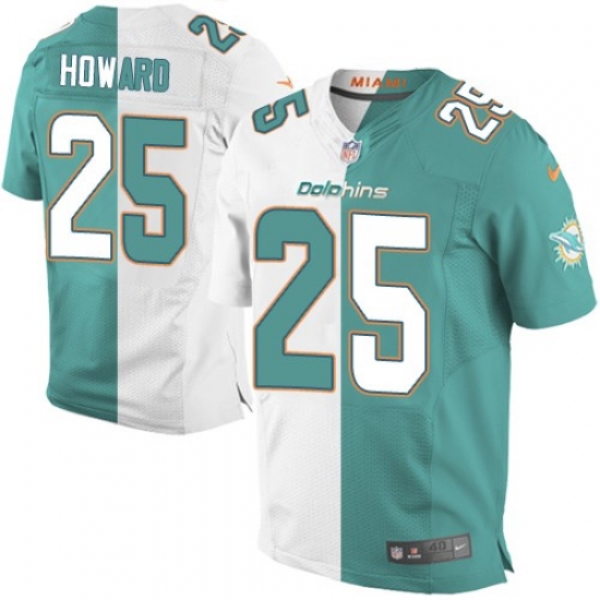 Men's Nike Miami Dolphins #25 Xavien Howard Elite Aqua Green/White Split Fashion NFL Jersey