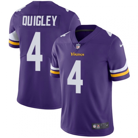 Home>NFL>Minnesota Vikings>Ryan Quigley>Men's Nike Minnesota Vikings #4 Ryan Quigley Purple Team Color Vapor Untouchable Limited Player NFL Jersey