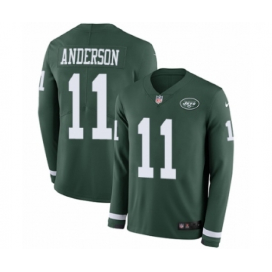 >Men's Nike New York Jets #11 Robby Anderson Limited Green Therma Long Sleeve NFL Jersey