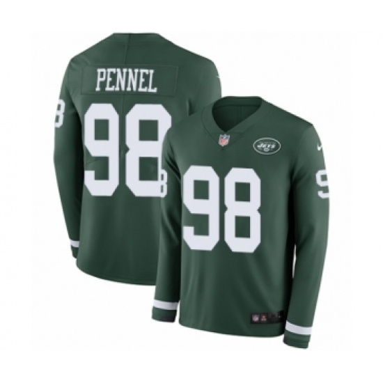 >Men's Nike New York Jets #98 Mike Pennel Limited Green Therma Long Sleeve NFL Jersey