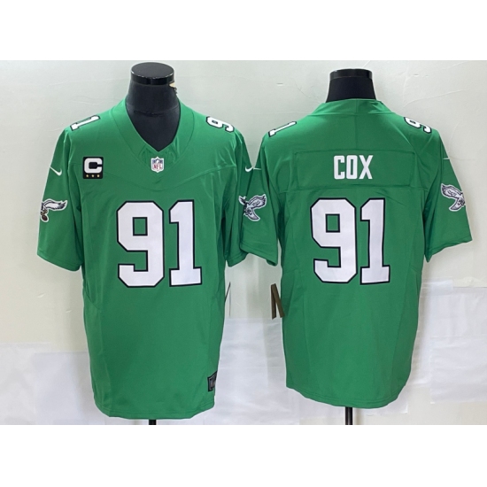 >Men's Nike Philadelphia Eagles #91 Fletcher Cox Green 2023 F.U.S.E. Vapor Untouchable C Stitched Football Jersey