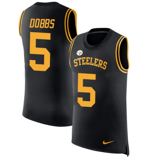 Home>NFL>Pittsburgh Steelers>Joshua Dobbs>Men's Nike Pittsburgh Steelers #5 Joshua Dobbs Black Rush Player Name & Number Tank Top NFL Jersey