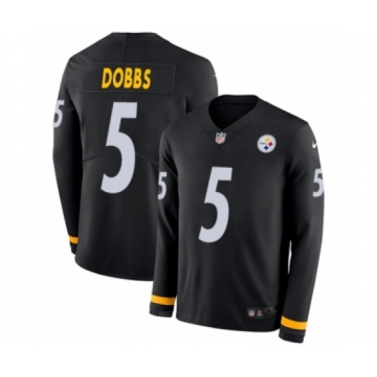 >Men's Nike Pittsburgh Steelers #5 Joshua Dobbs Limited Black Therma Long Sleeve NFL Jersey
