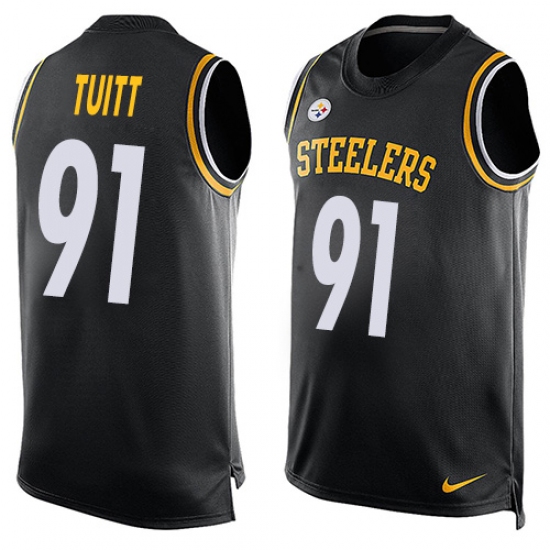 Home>NFL>Pittsburgh Steelers>Stephon Tuitt>Men's Nike Pittsburgh Steelers #91 Stephon Tuitt Limited Black Player Name & Number Tank Top NFL Jersey
