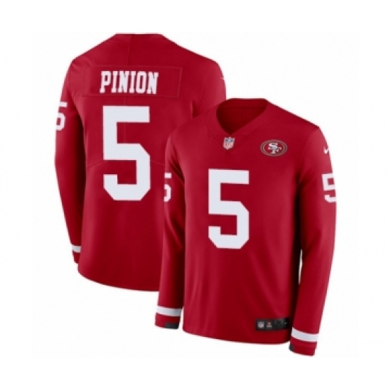 Men's Nike San Francisco 49ers #5 Bradley Pinion Limited Red Therma Long Sleeve NFL Jersey