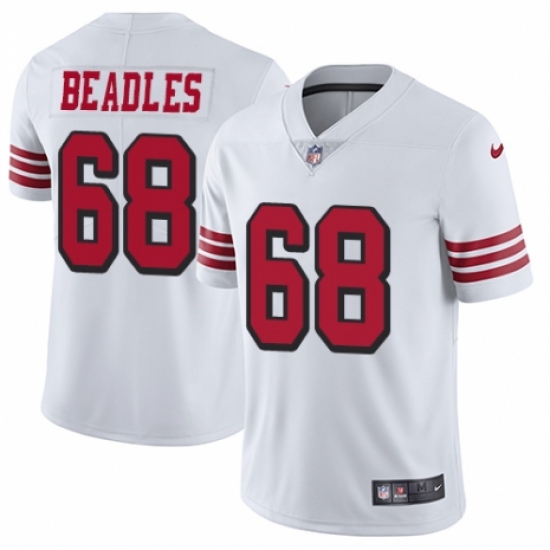>Men's Nike San Francisco 49ers #68 Zane Beadles Limited White Rush Vapor Untouchable NFL Jersey