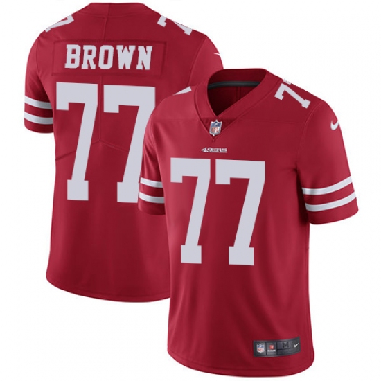 Men's Nike San Francisco 49ers #77 Trent Brown Red Team Color Vapor Untouchable Limited Player NFL Jersey