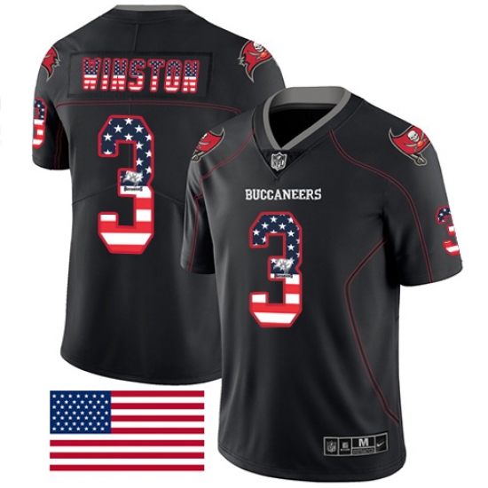 Men's Nike Tampa Bay Buccaneers #3 Jameis Winston Limited Black Rush USA Flag NFL Jersey