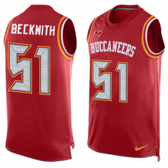 Home>NFL>Tampa Bay Buccaneers>Kendell Beckwith>Men's Nike Tampa Bay Buccaneers #51 Kendell Beckwith Limited Red Player Name & Number Tank Top NFL Jersey