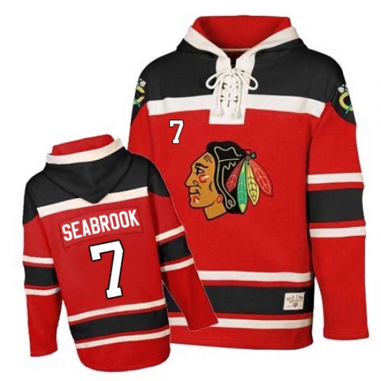 Home>NHL>Chicago Blackhawks>Chris Chelios>Men's Old Time Hockey Chicago Blackhawks #7 Chris Chelios Premier Red Sawyer Hooded Sweatshirt NHL Jersey