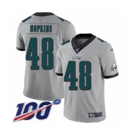 Men's Philadelphia Eagles #48 Wes Hopkins Limited Silver Inverted Legend 100th Season Football Jersey