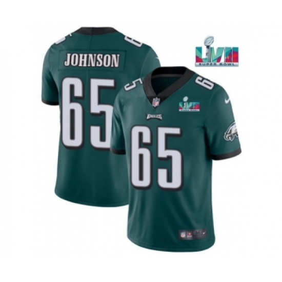 Men's Philadelphia Eagles #65 Lane Johnson Green Super Bowl LVII Patch Vapor Untouchable Limited Stitched Jersey