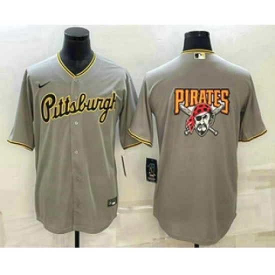 >Men's Pittsburgh Pirates Big Logo Grey Stitched MLB Cool Base Nike Jersey