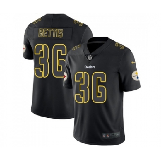 >Men's Pittsburgh Steelers #36 Jerome Bettis Limited Black Rush Impact Football Jersey