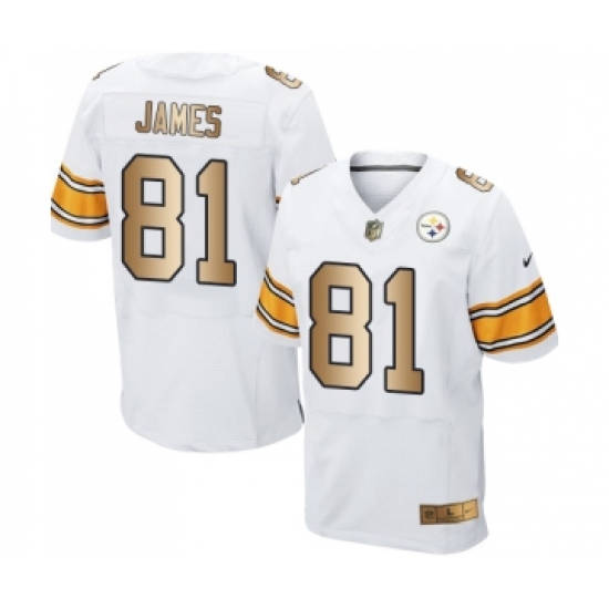 >Men's Pittsburgh Steelers #81 Jesse James Elite White Gold Football Jersey