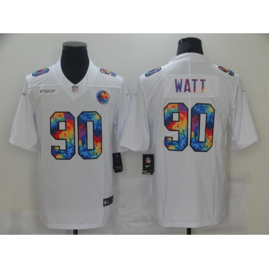 >Men's Pittsburgh Steelers #90 T. J. Watt White Rainbow Version Nike Limited Jersey