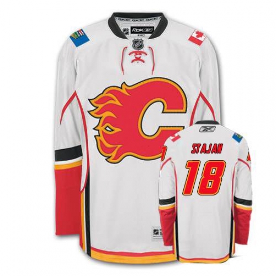 Home>NHL>Calgary Flames>Matt Stajan>Men's Reebok Calgary Flames #18 Matt Stajan Authentic White Away NHL Jersey