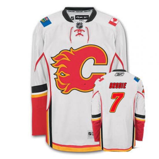 Men's Reebok Calgary Flames #7 TJ Brodie Authentic White Away NHL Jersey