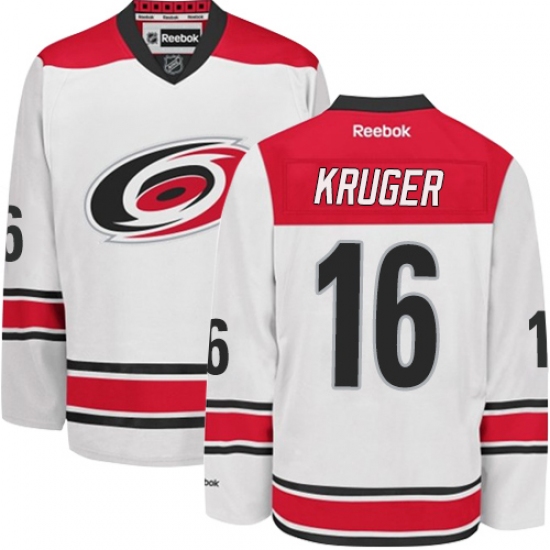 Men's Reebok Carolina Hurricanes #16 Marcus Kruger Authentic White Away NHL Jersey