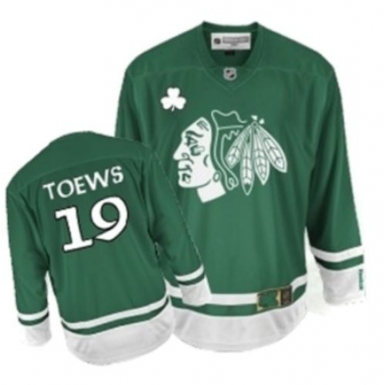 Home>NHL>Chicago Blackhawks>Jonathan Toews>Men's Reebok Chicago Blackhawks #19 Jonathan Toews Premier Green St Patty's Day NHL Jersey