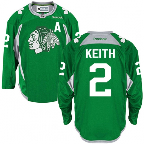 Men's Reebok Chicago Blackhawks #2 Duncan Keith Premier Green Practice NHL Jersey