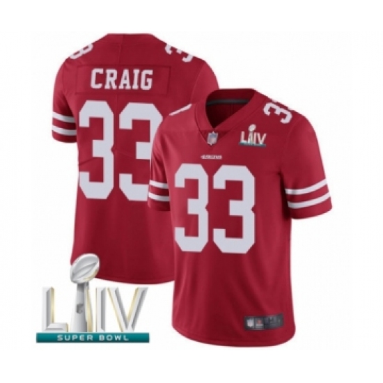 >Men's San Francisco 49ers #33 Roger Craig Red Team Color Vapor Untouchable Limited Player Super Bowl LIV Bound Football Jersey