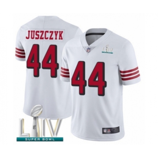 >Men's San Francisco 49ers #44 Kyle Juszczyk Limited White Rush Vapor Untouchable Super Bowl LIV Bound Football Jersey