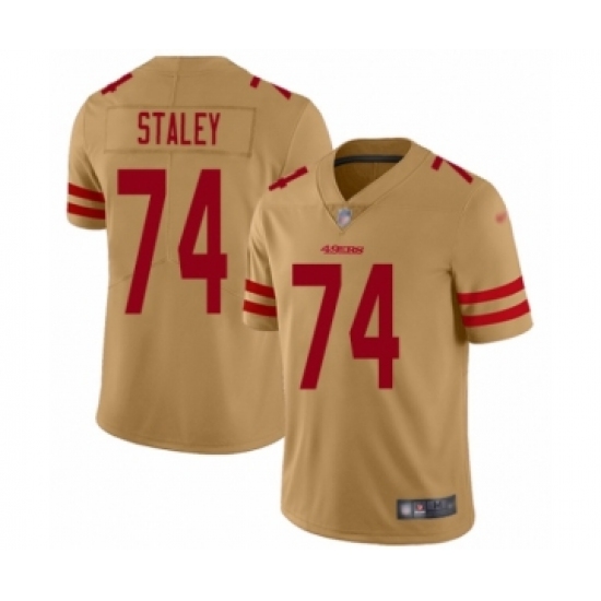 >Men's San Francisco 49ers #74 Joe Staley Limited Gold Inverted Legend Football Jersey