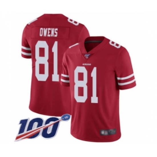 Men's San Francisco 49ers #81 Terrell Owens Red Team Color Vapor Untouchable Limited Player 100th Season Football Jersey